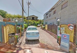 道路突き当りのひとつ手前の小道を右に曲がり、更にその突き当りを左に曲がります。